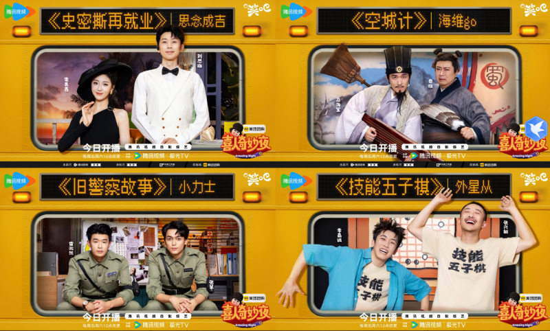 本季节目开场便迎来老喜人思念成吉的回归作品《史密撕再就业》,为上一季的作品写下续集;由新喜人海维go带来的《空城计》重新演绎三国经典,以“世界是个巨大的草台班子”为主题新编三国故事,其中“接好运”梗让辛芷蕾大呼共鸣,而他们也在媒体扫楼日上分享了对于用喜剧形式改编经典的看法,“经典能够经得起琢磨与推敲,无论过多久,都能有不同的角度的挖掘,所以也选择了这样的题材进行创作”;作品《技能五子棋》以脑洞大开的设置与直给的吐槽,使得不少观众评价外星从小队“十分抽象”。